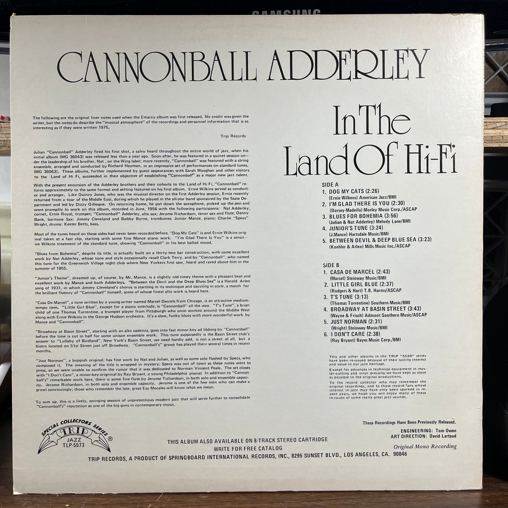 Front cover is tilted picture of the original cover embedded in white cover, with texts "Cannonball Adderley 1956" and "Original Mono Recording".