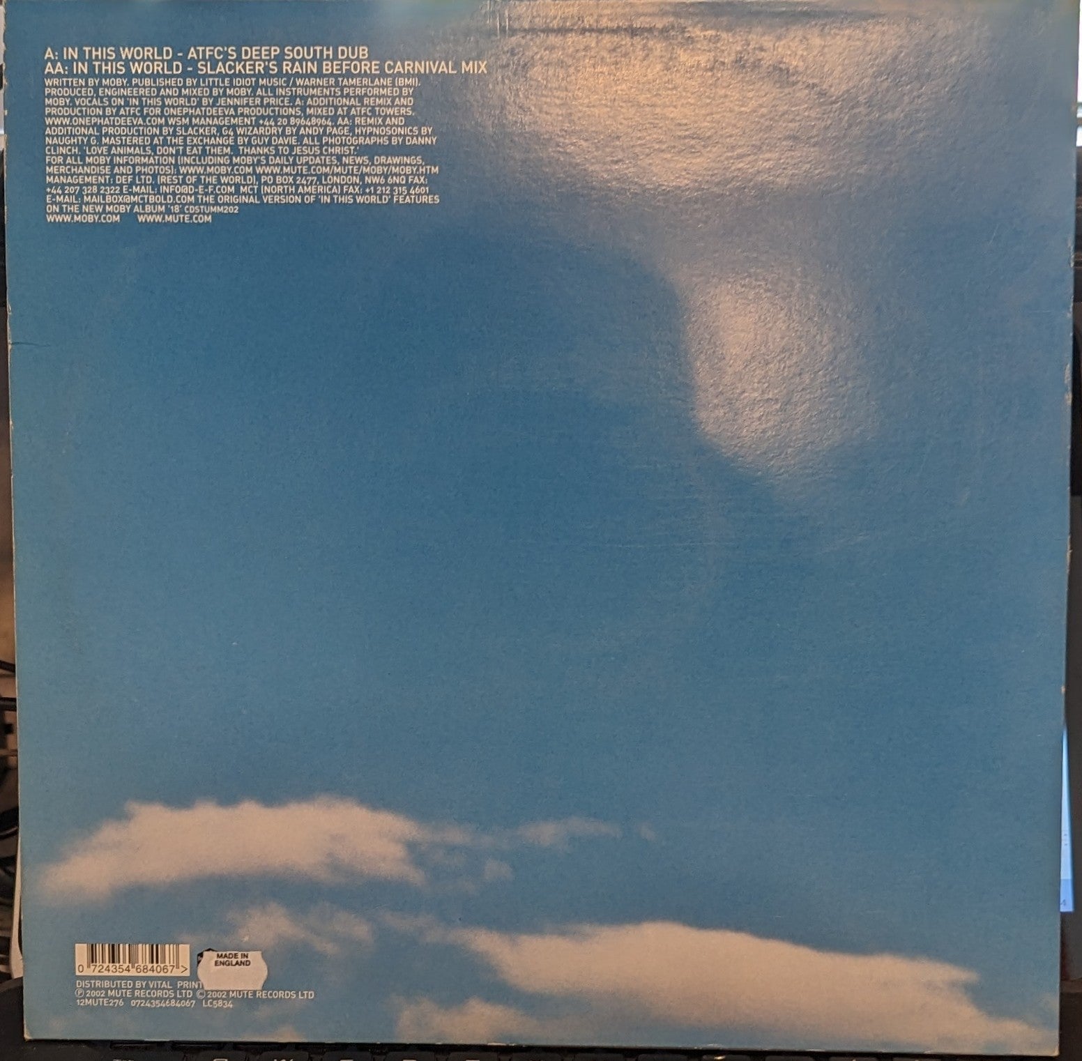 Tracklist: A. In This World (ATFC's Deep South Dub), AA. In This World (Slacker's Rain Before Carnival Mix)