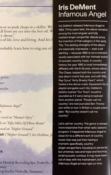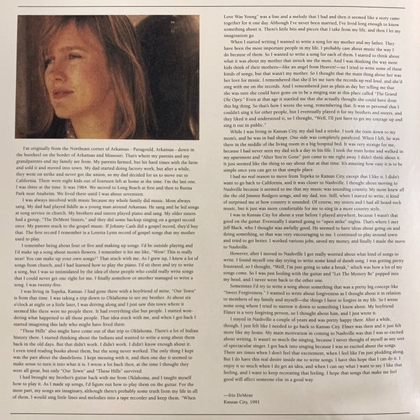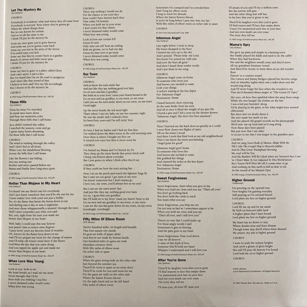 Tracklist: A1. Let The Mystery Be, A2. These Hills, A3. Hotter Than Mojave In My Heart, A4. When Love Was Young, A5. Our Town, A6. Fifty Miles Of Elbow Room, B1. Infamous Angel, B2. Sweet Forgiveness, B3. After You're Gone, B4. Mama's Opry, B5. Higher Ground