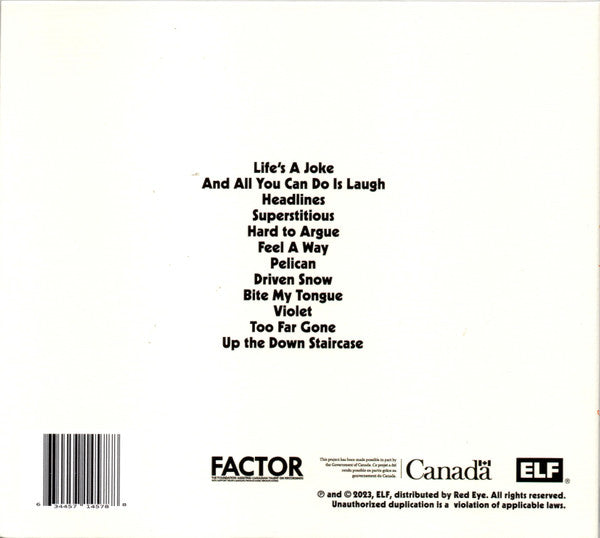Tracklist: 1. Life's A Joke, 2. And All You Can Do Is Laugh, 3. Headlines, 4. Superstitious, 5. Hard To Argue, 6. Feel A Way, 7. Pelican, 8. Driven Snow, 9. Bite My Tongue, 10. Violet, 11. Too Far Gone, 12. Up The Down Staircase