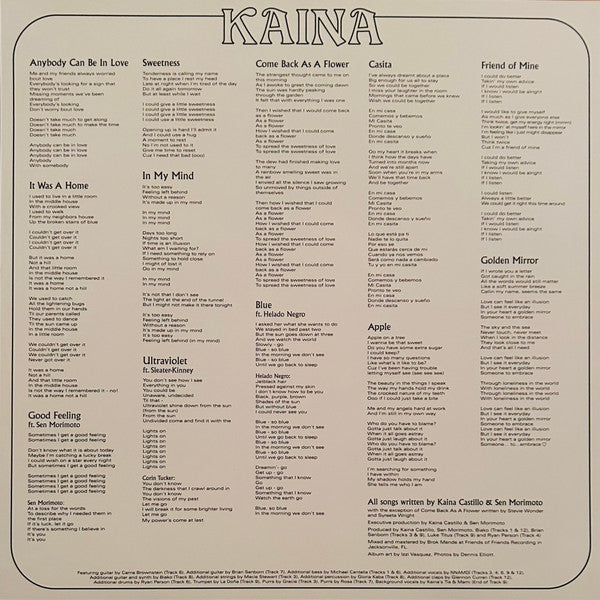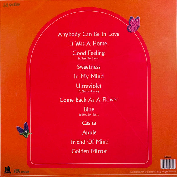 Tracklist: A1. Anybody Can Be In Love, A2. It Was A Home, A3. Good Feeling, A4. Sweetness, A5. In My Mind, A6. Ultraviolet, B1. Come Back As A Flower, B2. Blue, B3. Casita, B4. Apple, B5. Friend Of Mine, B6. Golden Mirror