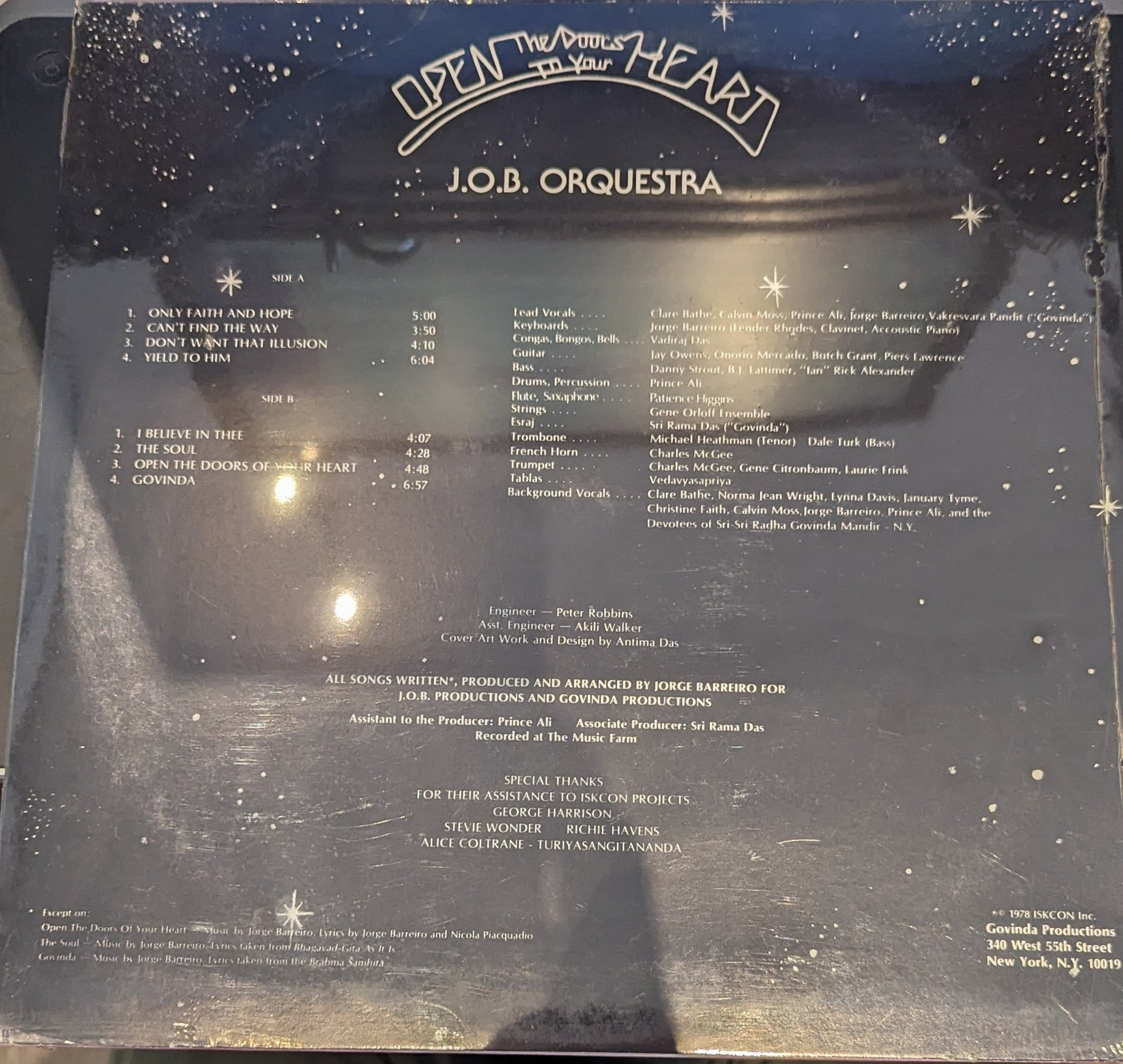 Tracklist: A1. Only Faith And Hope, A2. Can't Find The Way, A3. Don't Want That Illusion, A4. Yield To Him, B1. I Believe In Thee, B2. The Soul, B3. Open The Doors Of Your Heart, B4. Govinda
