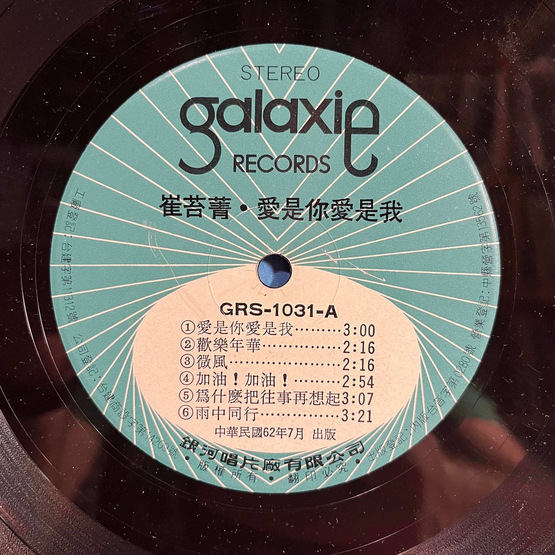Tracklist: A1. 愛是你愛是我, A2. 歡樂年華, A3. 微風, A4. 加油! 加油!, A5. 爲什麼把往事再想起, A6. 雨中同行, B1. 可愛的魔力, B2. 月迷朦星兒稀, B3. 眞湊巧, B4. 送你一朶紅玫瑰, B5. 快樂的我, B6. 你是否還記得
