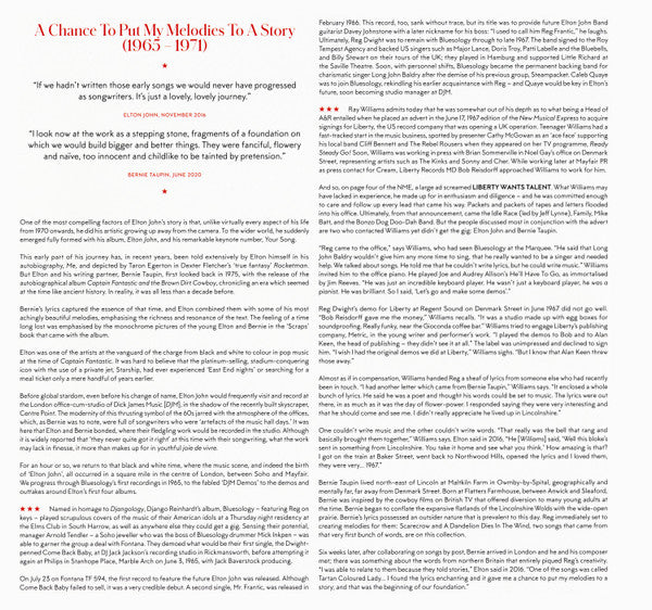 Written-By – Elton John (tracks: B7, C7, F1), Elton John & Bernie Taupin (tracks: A2 to A4, A8, B2, B5, B6, C1 to C6, D1 to D6, F2 to F5), Reg Dwight (tracks: A1, A5 To A7, B1, B4 ,B4)
