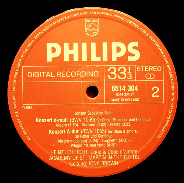 Tracklist: . Concerto In F For Oboe, Strings And B.c., BWV 1053, . Concerto In D Minor For Oboe, Strings And B.c., BWV 1059, . Concerto In A For Oboe, Strings And B.c., BWV 1055