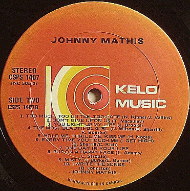 Tracklist: A1. The Twelfth Of Never, A2. It's Not For Me To Say, A3. A Certain Smile, A4. Life Is A Song Worth Singing, A5. (Do You Know Where You're Going To) Theme From "Mahogany", A6. Chances Are, A7. Gina, A8. What Will My Mary Say?, A9. Mandy, A10. I'm Coming Home, B1. Too Much, Too Little, Too Late, B2. Don't Give Up On Us, B3. You Light Up My Life, B4. The Most Beautyful Girl, B5. Hold Me, Thrill Me, Kiss Me, B6. Every Time You Touch Me ( I Get High), B7. One Day In Your Life, B8. Put On A Happy Face, B9. Misty, B10. I Write The Songs