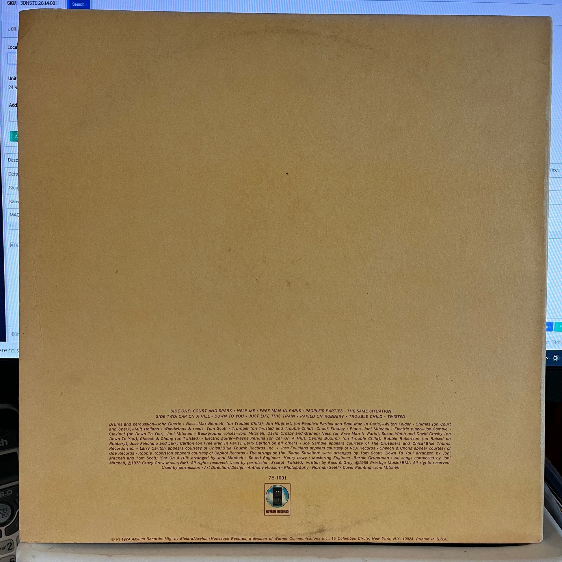 Tracklist: A1. Court And Spark, A2. Help Me, A3. Free Man In Paris, A4. People's Parties, A5. The Same Situation, B1. Car On A Hill, B2. Down To You, B3. Just Like This Train, B4. Raised On Robbery, B5. Trouble Child, B6. Twisted