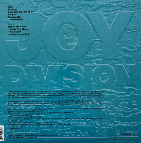 Tracklist: A1. Disorder, A2. Love Will Tear Us Apart, A3. Insight, A4. Shadowplay, A5. Transmission, B1. Day Of The Lords, B2. Twenty Four Hours, B3. These Days, B4. A Means To An End