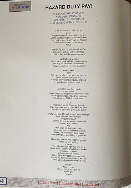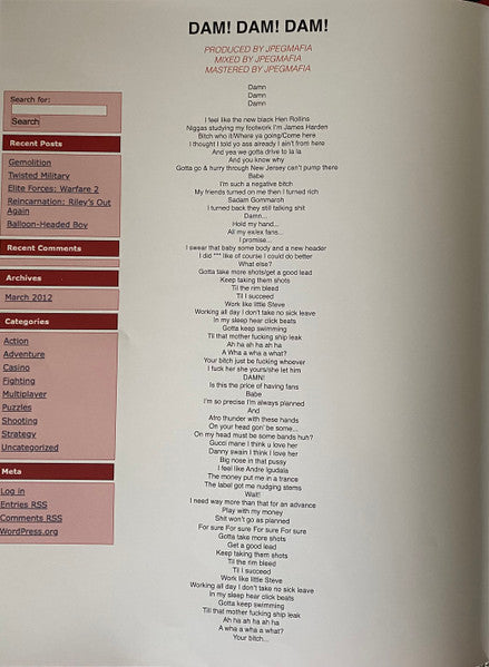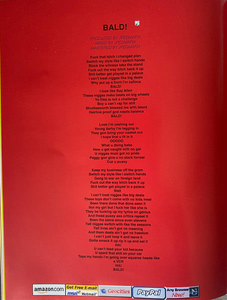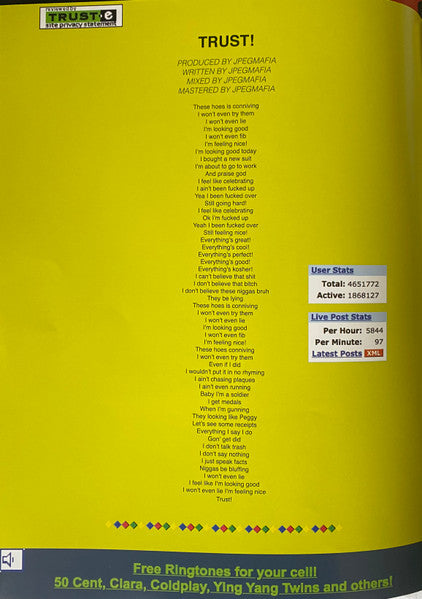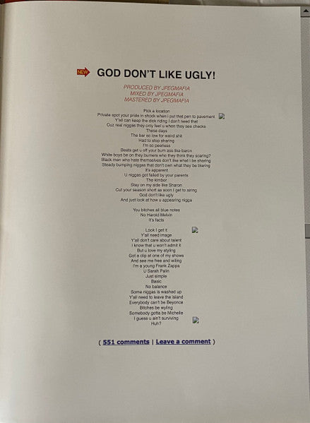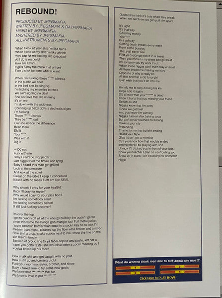 Tracklist: A1. Trust!, A2. Dirty!, A3. Nemo!, A4. End Credits!, A5. Hazard Duty Pay!, A6. God Don'T Like Ugly!, B1. What Kind Rappin' Is This?, B2. Thot's Prayer!, B3. Are U Happy?, B4. Rebound!, B5.