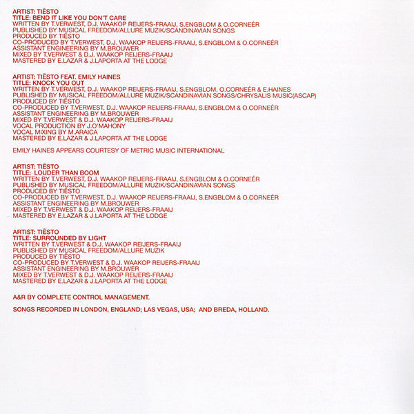 Songs recorded in London, England; Las Vegas, USA; and Breda, Holland.