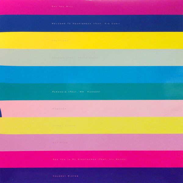 Tracklist: A1. Say You Will, A2. Welcome To Heartbreak, A3. Heartless, B1. Amazing, B2. Love Lockdown, B3. Paranoid, C1. RoboCop, C2. Street Lights, C3. Bad News, D1. See You In My Nightmares, D2. Coldest Winter, D3. Pinocchio Story (Live From Singapore), CD-1. Say You Will, CD-2. Welcome To Heartbreak, CD-3. Heartless, CD-4. Amazing, CD-5. Love Lockdown, CD-6. Paranoid, CD-7. RoboCop, CD-8. Street Lights, CD-9. Bad News, CD-10. See You In My Nightmares, CD-11. Coldest Winter, CD-12. Pinocchio Story (Live From Singapore)