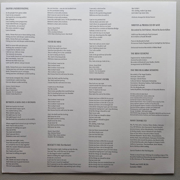 Kate Bush & Fish people records are proud and excited to announce new pressings of all 10 of Kate Bush's albums "It's very exciting to see people appreciating the physical presence of an album released on vinyl. It's how it's always been for me, especially when I was a teenager. The whole buzz of the record store was part of the experience. Buying an album was an event." Kate Bush. The records are all pressed on 180gm vinyl at the world-renowned Record Industry plant in the Netherlands. New lacquers were cut from the 2018 remasters by Bernie Grundman and overseen by mastering engineer James Guthrie. All designed by Kate and feature new Fish People label designs, stunning colour vinyl combinations and obi strips with pressing date. They are protected in resealable poly-bag liners with a 'Fish People Reissue' sticker, bottom right. The Sensual World is the sixth studio album by Kate Bush. It was released in October 1989 and reached no. 2 in the UK album chart. It has been certified Platinum by the British Phonographic Industry in the UK, and Gold by the RIAA in the US.180gm Ash Grey vinyl. Obi strip with pressing date. Resealable poly-sleeve with sticker