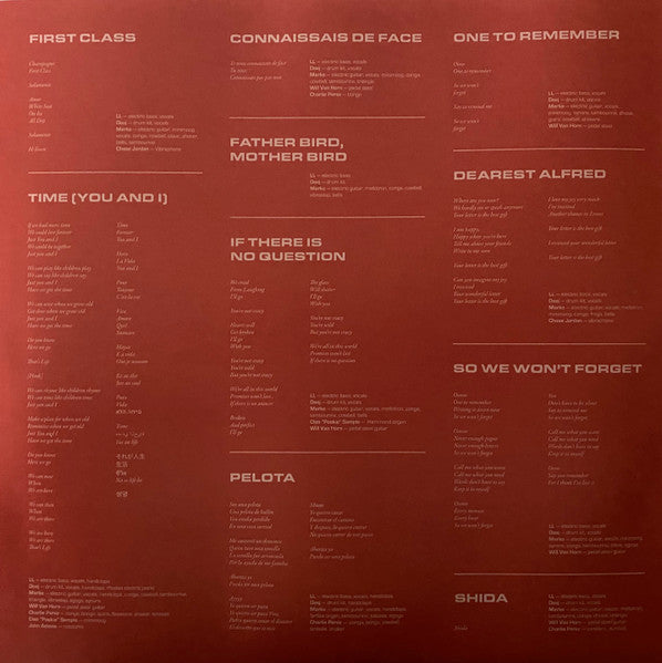 Tracklist: A1. First Class, A2. Time (You and I), A3. Connaissais De Face, A4. Father Bird, Mother Bird, A5. If There Is No Question, B1. Pelota, B2. One To Remember, B3. Dearest Alfred, B4. So We Won’t Forget, B5. Shida