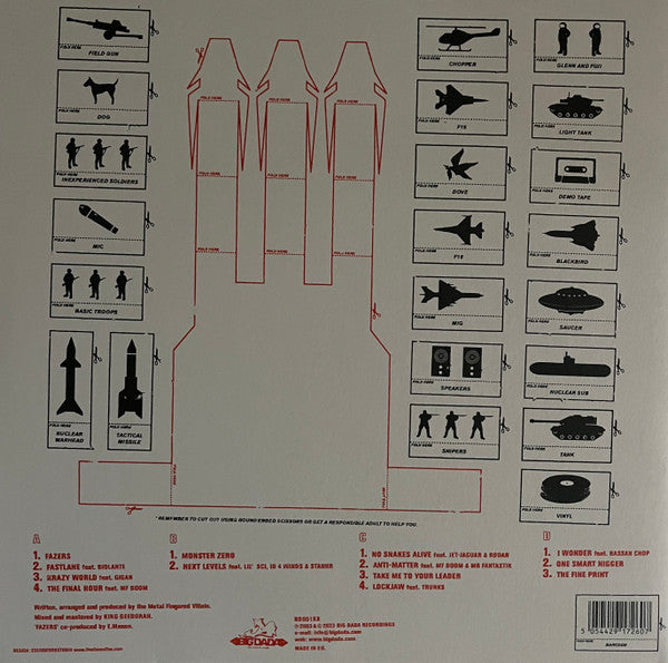 Features a variety of vocal guests (some under alias) including MF DOOM, Kurious, MF GRIMM (as Jet Jaguar) and other members of NYC’s Monsta Island Czars and more.