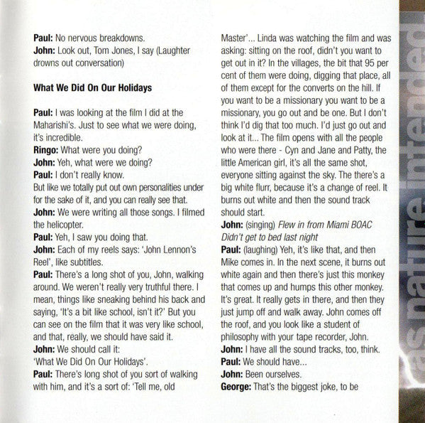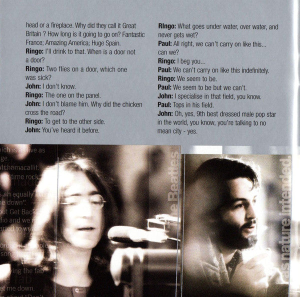 CD 2: All tracks composed by Lennon/McCartney and published by Northern Songs Ltd. except 'Because I Know You Love Me So' [track 2-1.7] and 'Fancy My Chances With You' [track 2-1.29] (composed by Lennon/McCartney and published by Lenono Music/MPL Communications Ltd.), 'Child of Nature' [track 2-1.13] and 'John's Piano Piece' [2-1.11] (composed by Lennon and published by Lenono Music), 'All Things Must Pass' [track 2-1.19] (composed by Harrison and published by Harrisongs Ltd.), 'Don't Pass Me By' [track 2-1.9] and 'Taking a Trip to Carolina' [2-1.10] (composed by Starkey and published by Startling Music Ltd.), 'Maggie Mae' [2-1.28] (trad. arr. Lennon/McCartney/Harrison/Starkey and published by Northern Songs Ltd./Harrisongs Ltd./Startling Music Ltd).