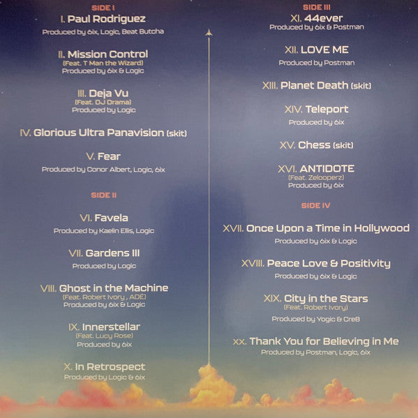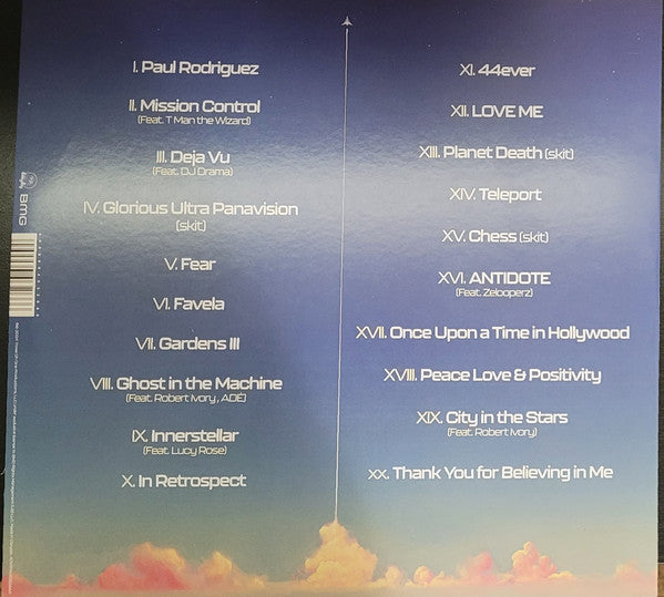 Tracklist: 1. Paul Rodriguez, 2. Mission Control, 3. Deja Vu, 4. Glorious Ultra Panavision (Skit), 5. Fear, 6. Favela, 7. Gardens III, 8. Ghost in the Machine, 9. Innerstellar, 10. In Retrospect, 11. 44ever, 12. Love Me, 13. Planet Death (Skit), 14. Teleport, 15. Chess (Skit), 16. Antidote, 17. Once Upon a Time in Hollywood, 18. Peace Love & Positivity, 19. City in the Stars, 20. Thank You for Believing in Me