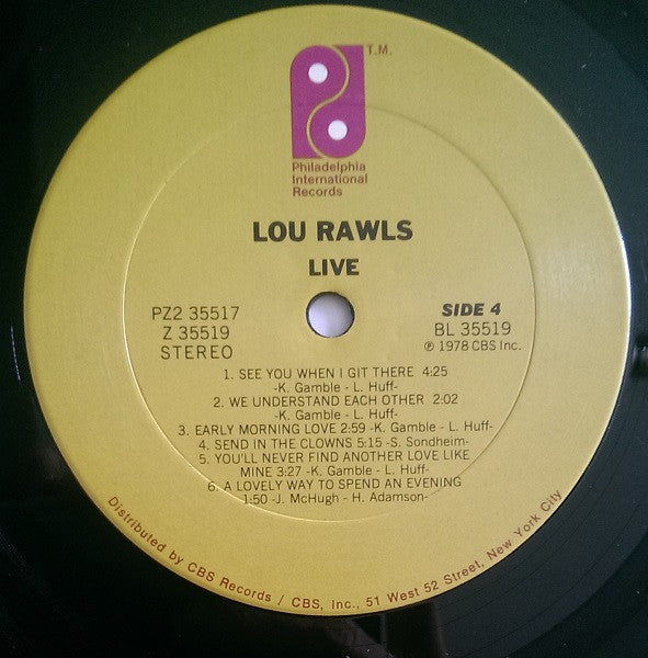 Tracklist: A1. Overture (You`ll Never Find Another Love Like Mine), A2. Groovy People, A3. Stay Awhile With Me, A4. Charge Card Blues Medley: Stormy Monday, A5. In The Evening When The Sun Goes Down, A6. Bye Bye Blackbird, B1. Pure Imagination, B2. Dead End Street, B3. Tobacco Road, B4. Love Is A Hurtin` Thing, B5. A Natural Man, B6. Lady Love, C1. This Song Will Last Forever, C2a. Tribute Medley: Sir Duke, C2b. Unforgettable, C2c. Mona Lisa, C2d. Lou`s Rap, C2e. Take The "A" Train, C2f. Sophisticated Lady, C2g. Dixieland Joe, C2h. Mack The Knife, C2i. Hello Dolly, C2j. This One`s For You, D1. See You When I Git There, D2. We Understand Each Other, D3. Early Morning Love, D4. When You Say Budweiser, You've Said It All, D5. Send In The Clowns, D6. You`ll Never Find Another Love Like Mine, D7. A Lovely Way To Spend An Evening