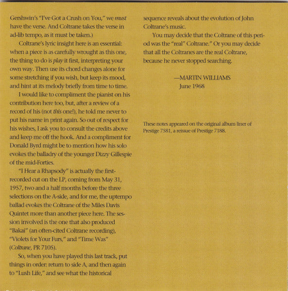 Recorded at Van Gelder Studio, Hackensack, NJ on May 31 (#5) and August 16, 1957 (#1-3), and January 10, 1958 (#4).