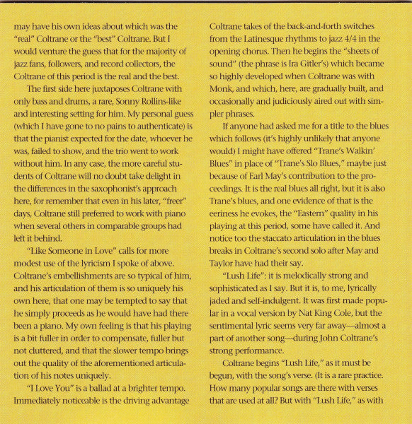 Bass – Earl May (tracks: 1 to 3), Paul Chambers (3) (tracks: 4, 5)