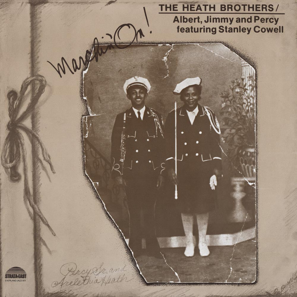 This obscure and difficult to find LP is the Heath Brothers’ debut album and is considered to be their best. ’Marchin’on’ is unquestionably a masterpiece and is a much sought-after album. With its wealth of riffs, it is much appreciated by samplers and has been sampled by various contemporary artists. It was originally released in 1976 on Strata-East, a label at the time co-owned by Stanley Cowell. The album flows fluidly, meticulously in a warm rich blend with the four part ‘smilin’ Billy suite being a tour de force on its own. All suites have the same anchor in melody but each branches out to its own distinctive song varying from relaxed to light to dramatic and upbeat. The Heath Brothers was formed in 1975 by brothers Jimmy, Percy, Albert Heath and the much celebrated pianist Stanley Cowell in Philadelphia. The band later on continued with the brothers and alternate new members, with at one point the very talented ‘Mtume’ who is Jimmy Heath’s son, joining.