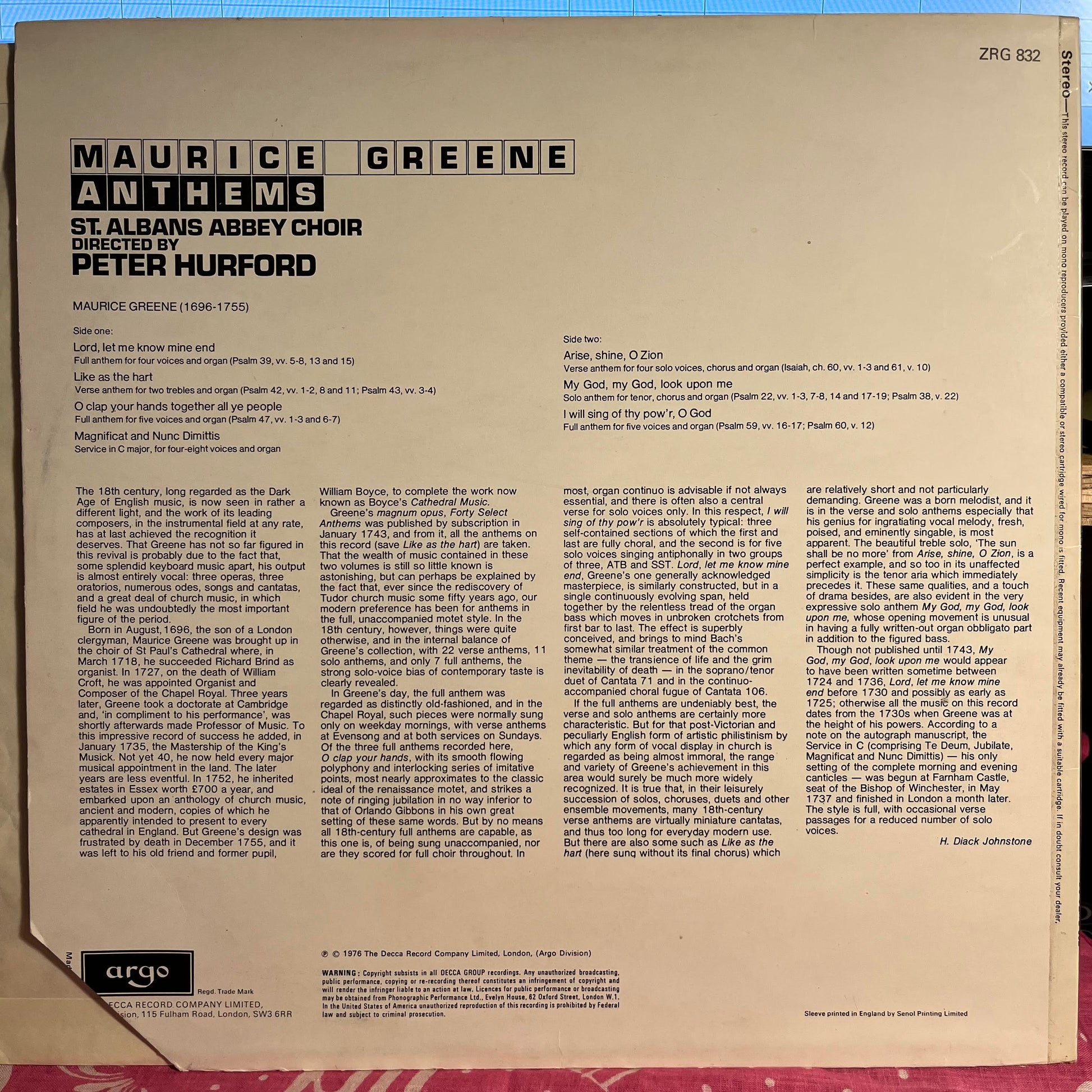 Tracklist: A1. Lord, Let Me Know Mine End (Psalm 39, Vv. 5-8, 13 And 15), A2. Like As The Hart (Psalm 42, Vv. 1-2, 8 And 1; Psalm 43, VV. 3-4), A3. O Clap Your Hands Together All Yet People (Psalm 47, Vv. 1-3 And 6-7), A4. Magnificat And Nunc Dimittis, B1. Arise, Shine, O Zion (Isalah, Ch. 60., Vv. 1-3 And 62, V.10), B2. My God, My God, Look Upon Me (Psalm 22, Vv. 1-3, 7-8,14 And 17-19; Psalm 38, V. 22), B3. I Will Sing Of Thy Pow'r, O God (Psalm 59, Vv. 16-17; Psalm 60, V. 12)