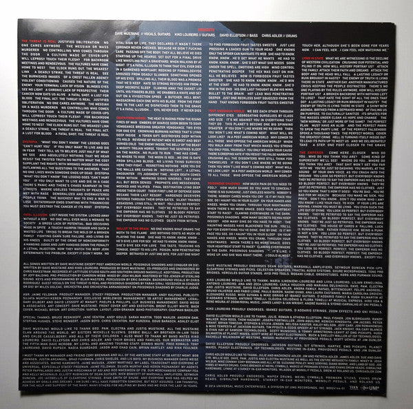 Tracklist: A1. The Threat Is Real, A2. Dystopia, A3. Fatal Illusion, A4. Death From Within, A5. Bullet To The Brain, B1. Post American World , B2. Poisonous Shadows, B3. Conquer Or Die!, B4. Lying In State, B5. The Emperor, B6. Foreign Policy