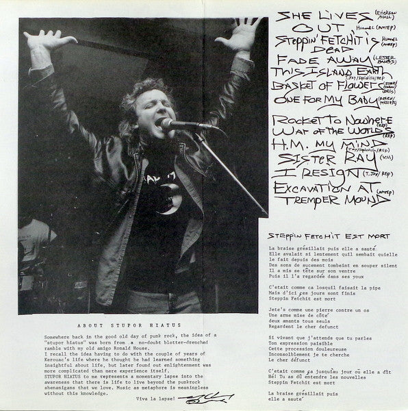 Tracklist: A1. She Lives, A2. Out, A3. Steppin' Fetchit Is Dead, A4. Fade Away, A5. This Island Earth, A6. Basket Of Flowers, A7. One For My Baby, B1. Rocket To Nowhere, B2. War Of The Worlds, B3. H.M. (Heavy Metal Has Destroyed) My Mind, B4. Sister Ray, B5. I Resign, B6. Excavation At Temper Mound