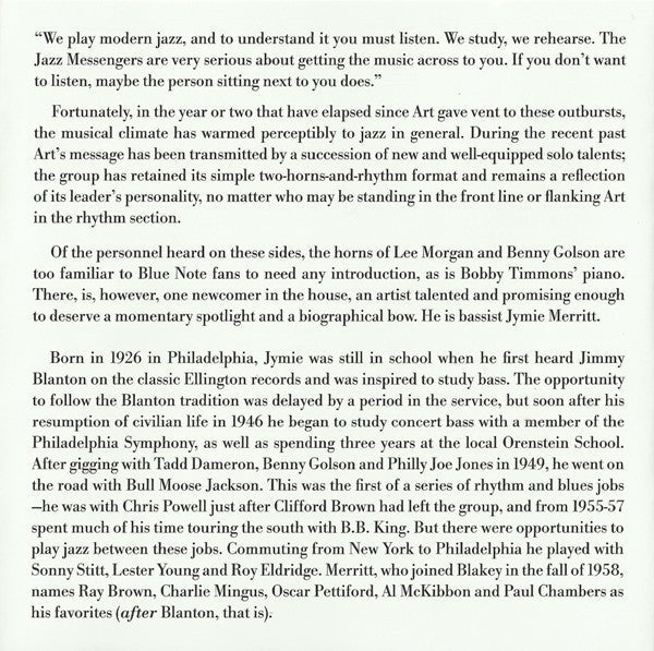 Album originally released in 1958 on Blue Note as BLP-4003. Original album art © 1958 Blue Note Records.