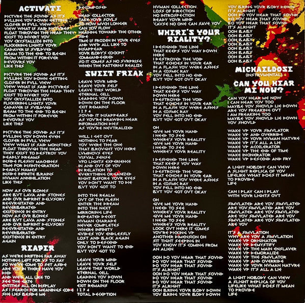 Tracklist: A1. Activate, A2. Reaper, A3. Sweet Freak, A4. Where's Your Reality?, A5. Michaeldose, B1. Can You Hear Me Now?, B2. Simulator, B3. Urge You, B4. Cavehead, B5. MEPEM...