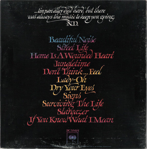 \Tracklist: A1. Beautiful Noise, A2. Stargazer, A3. Lady-Oh, A4. Don't Think... Feel, A5. Surviving The Life, A6. If You Know What I Mean, B1. Street Life, B2. Home Is A Wounded Heart, B3. Jungletime, B4. Signs, B5. Dry Your Eyes