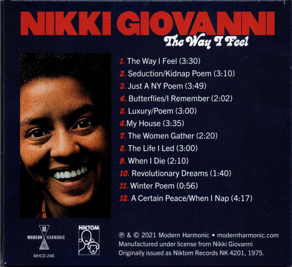 Tracklist: 1. The Way I Feel, 2. Seduction / Kidnap Poem, 3. Just A NY Poem, 4. Butterflies / I Remember, 5. Luxury / Poem, 6. My House, 7. The Women Gather, 8. The Life I Led, 9. When I Die, 10. Revolutionary Dreams, 11. Winter Poem, 12. A Certain Peace / When I Nap