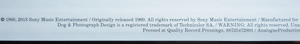 © 1960, 2013 Sony Music Entertainment / Originally released 1960. / Manufactured for Analogue Productions by Sony Music Entertainment