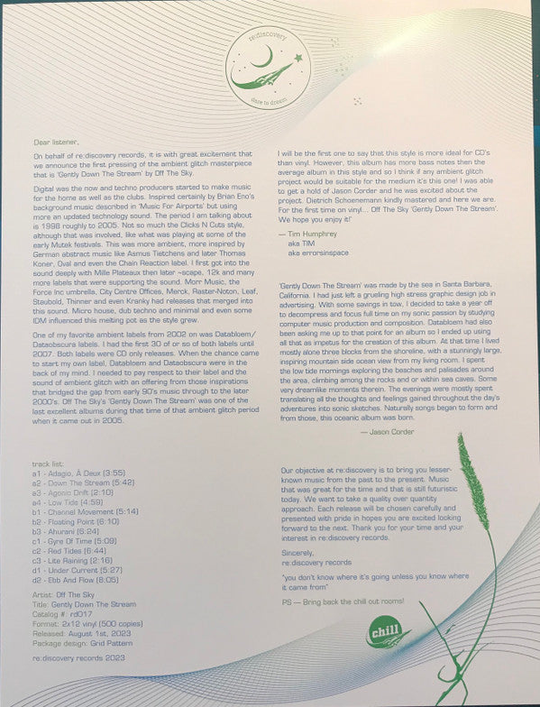 Tracklist: A1. Adagio, À Deux, A2. Down The Stream, A3. Agonic Drift, A4. Low Tide, B1. Channel Movement, B2. Floating Point, B3. Ahurani, C1. Gyre Of Time, C2. Red Tides, C3. Lite Raining, D1. Under Current, D2. Ebb And Flow