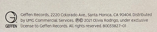 Tracklist: A1. Brutal, A2. Traitor, A3. Drivers License, A4. 1 Step Forward, 3 Steps Back, A5. Deja Vu, A6. Good 4 U, B1. Enough For You, B2. Happier, B3. Jealousy, Jealousy, B4. Favorite Crime, B5. Hope Ur Ok
