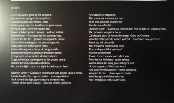 Tracklist: A1. Thebes, B2. Meditation Is The Practice Of Death, B3. Cremation Ghat I, B4. Cremation Ghat II