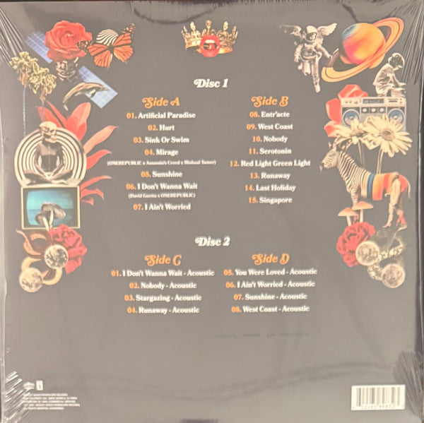 Tracklist: A1. Artificial Paradise, A2. Hurt, A3. Sink Or Swim, A4. Mirage, A5. Sunshine, A6. I Don't Wanna Wait, A7. I Ain't Worried, B8. Entr'acte, B9. West Coast, B10. Nobody, B11. Serotonin, B12. Red Light Green Light, B13. Runaway, B14. Last Holiday, B15. Singapore, C16. I Don’t Wanna Wait (Acoustic), C17. Nobody (Acoustic), C18. Stargazing (Acoustic), C19. Runaway (Acoustic), D20. You Were Loved (Acoustic), D21. I Ain't Worried (Acoustic), D22. Sunshine (Acoustic), D23. West Coast (Acoustic)