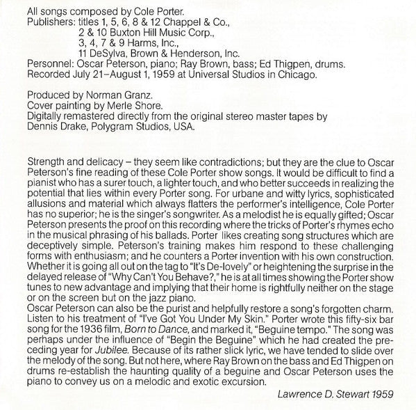 Oscar Peterson Plays The Cole Porter Songbook (CD) | Near Mint- (NM-) Near Mint (NM) Get Cheap Vinyl