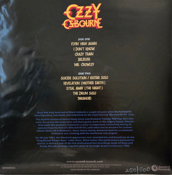 Tracklist: A1. Flying High Again, A2. I Don't Know, A3. Crazy Train, A4. Believer, A5. Mr. Crowley, B1. Suicide Solution/Guitar Solo, B2. Revelation (Mother Earth), B3. Steal Away (The Night), B4. The Drum Solo, B5. Paranoid