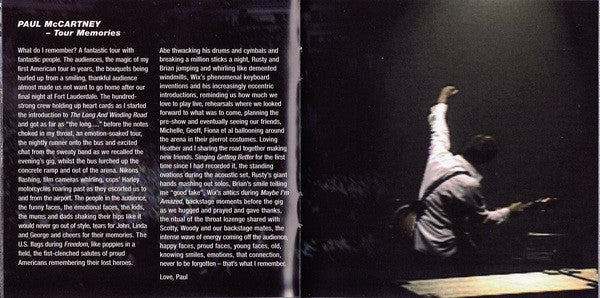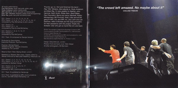 Tracklist: 1-1. Hello Goodbye, 1-2. Jet, 1-3. All My Loving, 1-4. Getting Better, 1-5. Coming Up, 1-6. Let Me Roll It, 1-7. Lonely Road, 1-8. Driving Rain, 1-9. Your Loving Flame, 1-10. Blackbird, 1-11. Every Night, 1-12. We Can Work It Out, 1-13. Mother Nature's Son, 1-14. Vanilla Sky, 1-15. Carry That Weight, 1-16. The Fool On The Hill, 1-17. Here Today, 1-18. Something, 2-1. Eleanor Rigby, 2-2. Here, There And Everywhere, 2-3. Band On The Run, 2-4. Back In The USSR, 2-5. Maybe I'm Amazed, 2-6. C Moon, 2-7. My Love, 2-8. Can't Buy Me Love, 2-9. Freedom, 2-10. Live And Let Die, 2-11. Let It Be, 2-12. Hey Jude, 2-13. The Long And Winding Road, 2-14. Lady Madonna, 2-15. I Saw Her Standing There, 2-16. Yesterday, 2-17. Sgt. Pepper's/The End