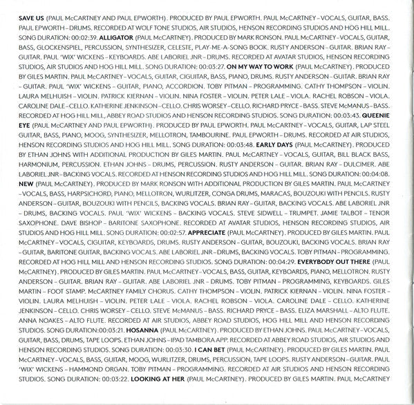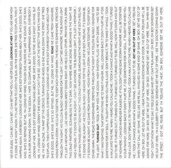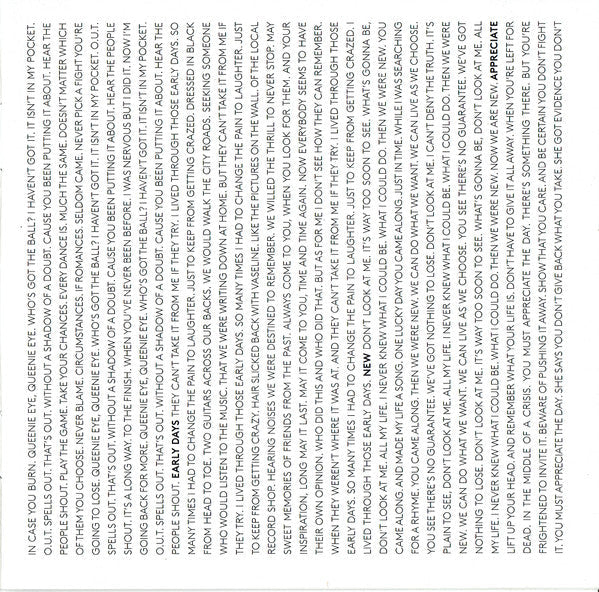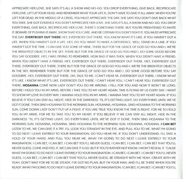 Tracklist: 1. Save Us, 2. Alligator, 3. On My Way To Work, 4. Queenie Eye, 5. Early Days, 6. New, 7. Appreciate, 8. Everybody Out There, 9. Hosanna, 10. I Can Bet, 11. Looking At Her, 12. Road, 13. Turned Out, 14. Get Me Out Of Here, 15. Scared