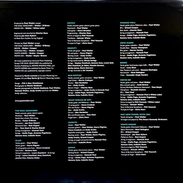 Tracklist: A1. The Soul Searchers , A2. Glide, A3. Mayfly, A4. Gravity , B1. Old Castles, B2. What Would He Say?, B3. Aspects, C1. Bowie , C2. Wishing Well , C3. Come Along , C4. Books, D1. Movin On , D2. May Love Travel With You, D3. White Horses