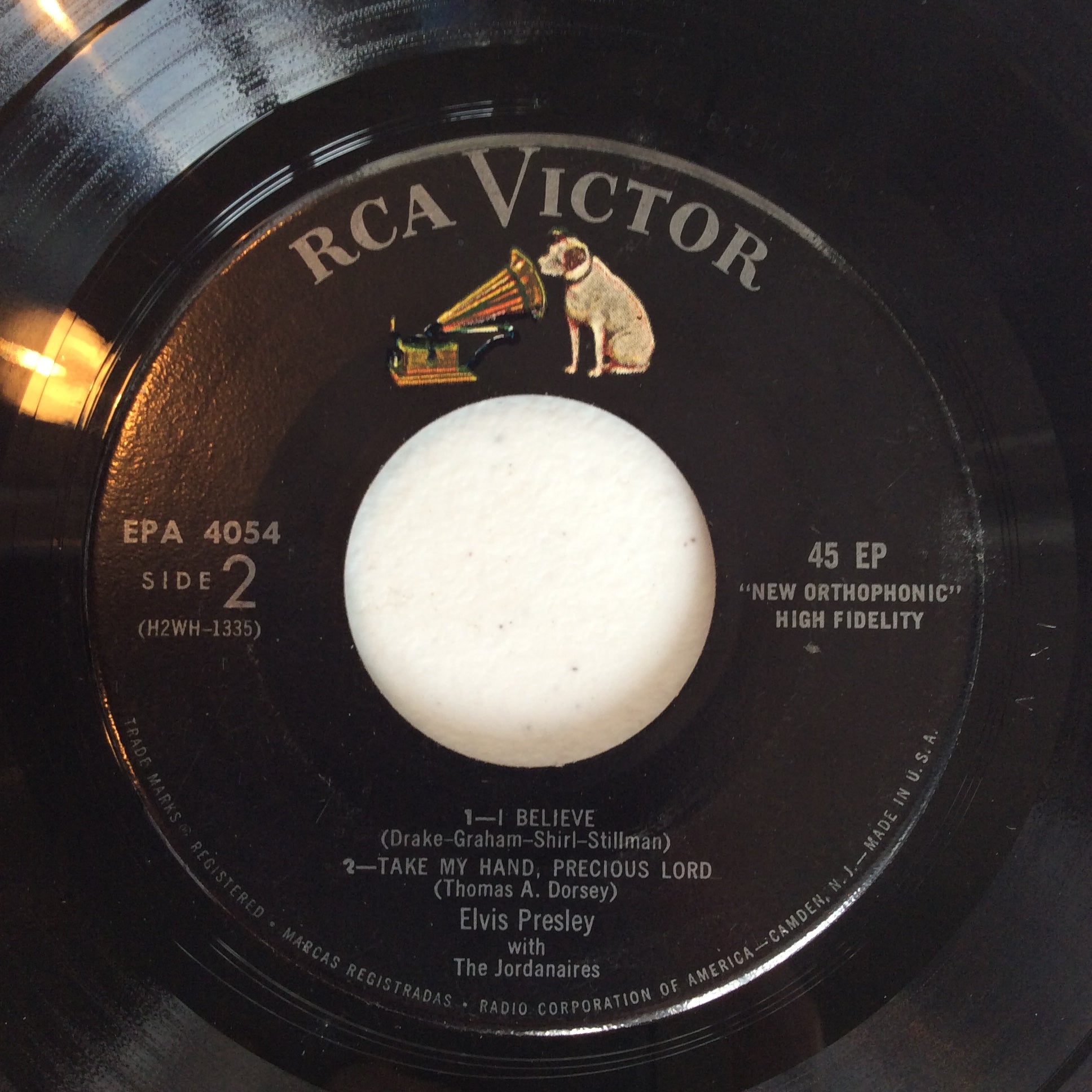 Indianapolis pressing with Black RCA Victor labels with dog on top and no horizontal lines. Sides on left side. 45 EP on right side. Hooked "1" for Side 1.