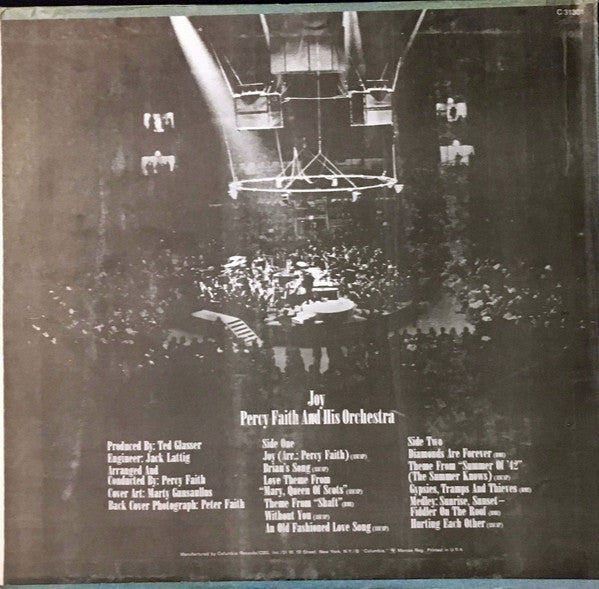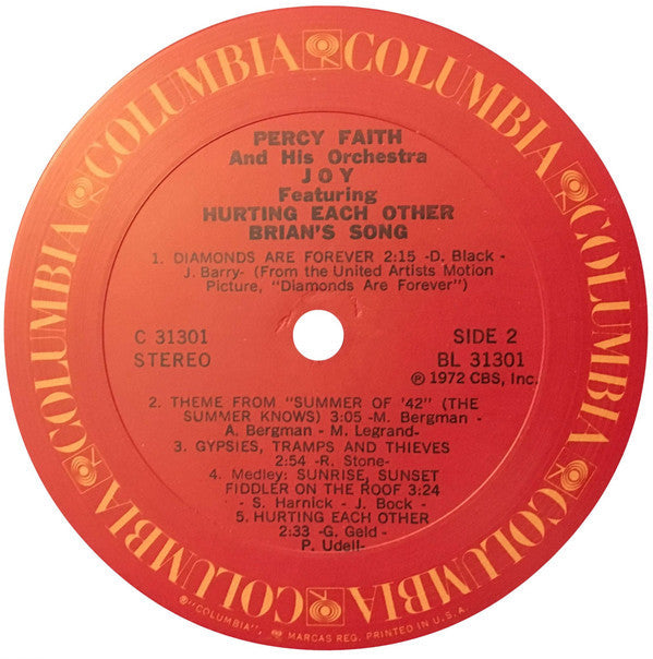 Tracklist: A1. Joy, A2. Brian's Song, A3. Love Theme From "Mary, Queen Of Scots" (This Way Mary), A4. Theme From "Shaft", A5. Without You, A6. An Old Fashioned Love Song, B1. Diamonds Are Forever, B2. Theme From "Summer Of '42" (The Summer Knows), B3. Gypsies, Tramps And Thieves, B4. Medley: Sunrise, Sunset; Fiddler On The Roof, B5. Hurting Each Other