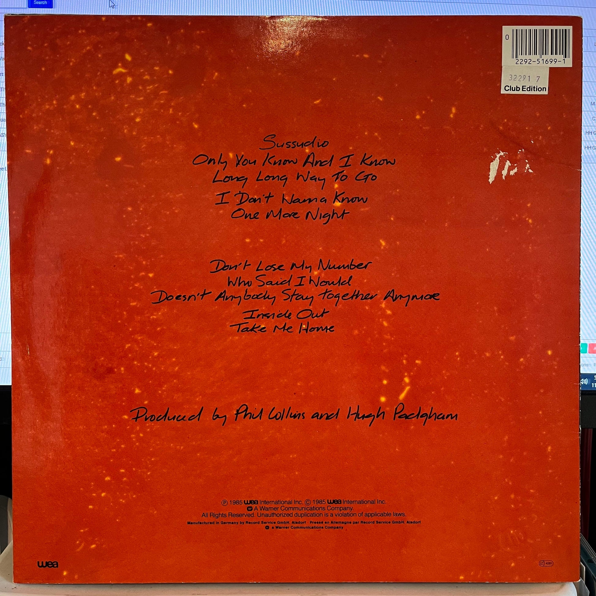 Tracklist: A1. Sussudio, A2. Only You Know And I Know, A3. Long Long Way To Go, A4. I Don't Wanna Know, A5. One More Night, B1. Don't Lose My Number, B2. Who Said I Would, B3. Doesn't Anybody Stay Together Anymore, B4. Inside Out, B5. Take Me Home