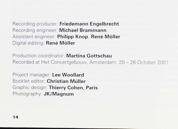 Recorded at Het Concertgebouw,Amsterdam,20-26 October 2001