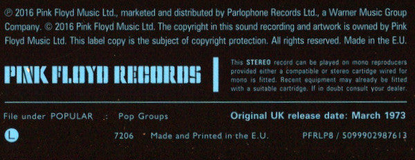 Pink Floyd The Dark Side Of The Moon Pink Floyd Records, Pink Floyd Records LP, Album, RE, RM, 180 Mint (M) Mint (M) Get Cheap Vinyl