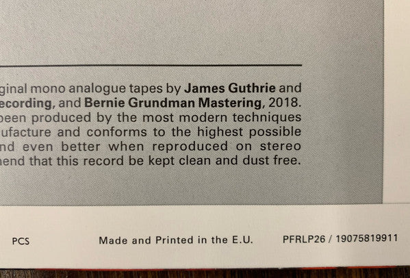 Tracklist: A1. Astronomy Dominé, A2. Lucifer Sam, A3. Matilda Mother, A4. Flaming, A5. Pow R. Toc H., A6. Take Up Thy Stethoscope And Walk, B1. Interstellar Overdrive, B2. The Gnome, B3. Chapter 24, B4. The Scarecrow, B5. Bike