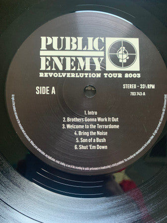 Tracklist: A1. Intro, A2. Brothers Gonna Work It Out, A3. Welcome To The Terrordome, A4. Bring The Noise, A5. Son Of A Bush, A6. Shut ‘Em Down, B1. Black Steel In The Hour of Chaos, B2. He Got Game & Band Representation, B3. Revolverlution, B4. 911 Is A Joke, B5. Public Enemy No. 1, C1. DJ Lord Solo, C2. Give It Up, C3. Don’t Believe The Hype, C4. Rebel Without A Pause, C5. By The Time I Get To Arizona, D1. Fight The Power, D2. DJ Set, D3. Flavor Flav Freestyle, D4. Drum Solo, D5. Shake Your Body, D6. Sabotage, E1. Know Applause, E2. Pressure, E3. Medley Guitar, E4. Rock Box, E5. What Good Is A Bomb, E6. Prophets Of Rage, F1. Can’t Trust It, F2. Do You Wanna Go Our Way???, F3. Gotta Give The Peeps What They Need, F4. Hazy Shade Of Criminal/She Watch Channel Zero, F5. Thank You