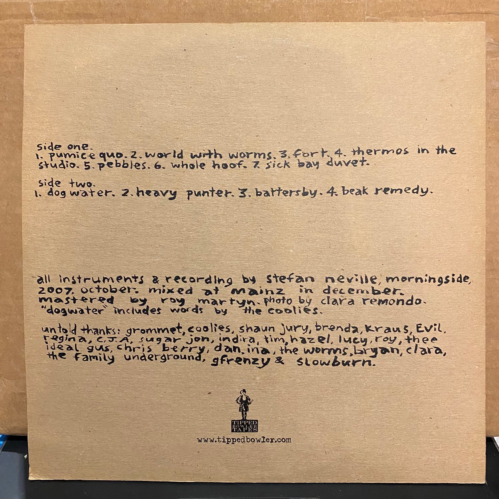Tracklist: A1. Pumice Quo, A2. World With Worms, A3. Fort, A4. Thermos In The Studio, A5. Pebbles, A6. Whole Hoof, A7. Sick Bay Duvet, B1. Dog Water, B2. Heavy Punter, B3. Battersby, B4. Beak Remedy