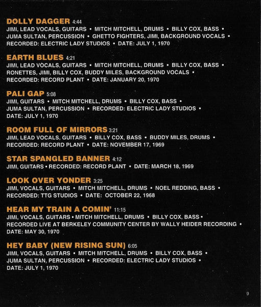 Backing Vocals – Billy Cox, Buddy Miles, Jimi*, Ronettes*